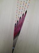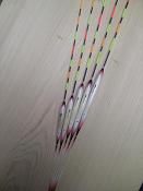 埼玉県のSさんご注文へら浮子(へらうき)です。浅棚用の特注浮子です。ボディ5.5ミリ径の4センチから6センチの5本セットです。トップは細テーパーで塗装色目盛り数も指定されました。ボディの絞りも指定されたこだわりのへら浮子です |
