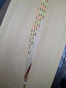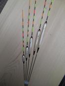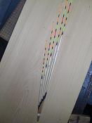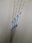 横浜のTさんご注文へら浮子(ヘラウキ)です。ボディ3~4センチの3本セットです。足はカーボンで長足仕様。トップはPCムクで立ちを意識した仕様となりました。ボディはクリア塗装でシンプルな仕上がりです。 |