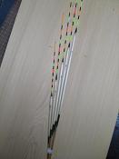 茨城県のSさんご注文へら浮子(ヘラウキ)です。ボディ11ミリ径の10と13センチです。トップはグラスムクロングトップです。流れ川の利根川ドボン専用浮子です。 |