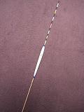 これも愛知県のYさんご注文へら浮子(ヘラウキ)です。ボディ6ミリ径で3.5~5.5センチ。トップは中細のパイプです。これもホワイトの総塗りに仕上げました。 |