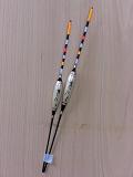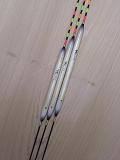 滋賀県のHさんご注文へら浮子(へらうき)です。ボディ7ミリ径の2と3センチのカッツケです。足はカーボンの3.5と4.5センチ。ボディが2センチと短いため絞るのに苦労しました。 |