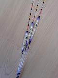 大阪のHさんご注文へら浮子(へらうき)です。ボディ4.2ミリ径で8.5センチ~11センチの3本セットです。一本はカーボン足仕様としました。ボディ塗装は変わりこま塗りです。 |