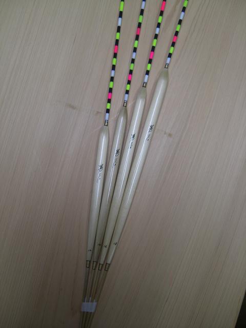 秋田県のKさんご注文へら浮子(へらうき)です。智の1,2,4番ですがトップは特太にしています。太いです・・・ |