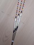 京都のKさんご注文へら浮子(へらうき)です。ボディ11ミリ径の10と12センチ。太トップとグラスムクのそれぞれ2本ずつです。パイプは竹でムクはカーボン足。ボディ塗装はマーブルとしました。 |